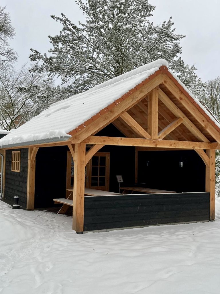 Een pipowagen, blokhut Morgenroosje, een vakantiehuis voor 10 personen of slapen in een Pod.